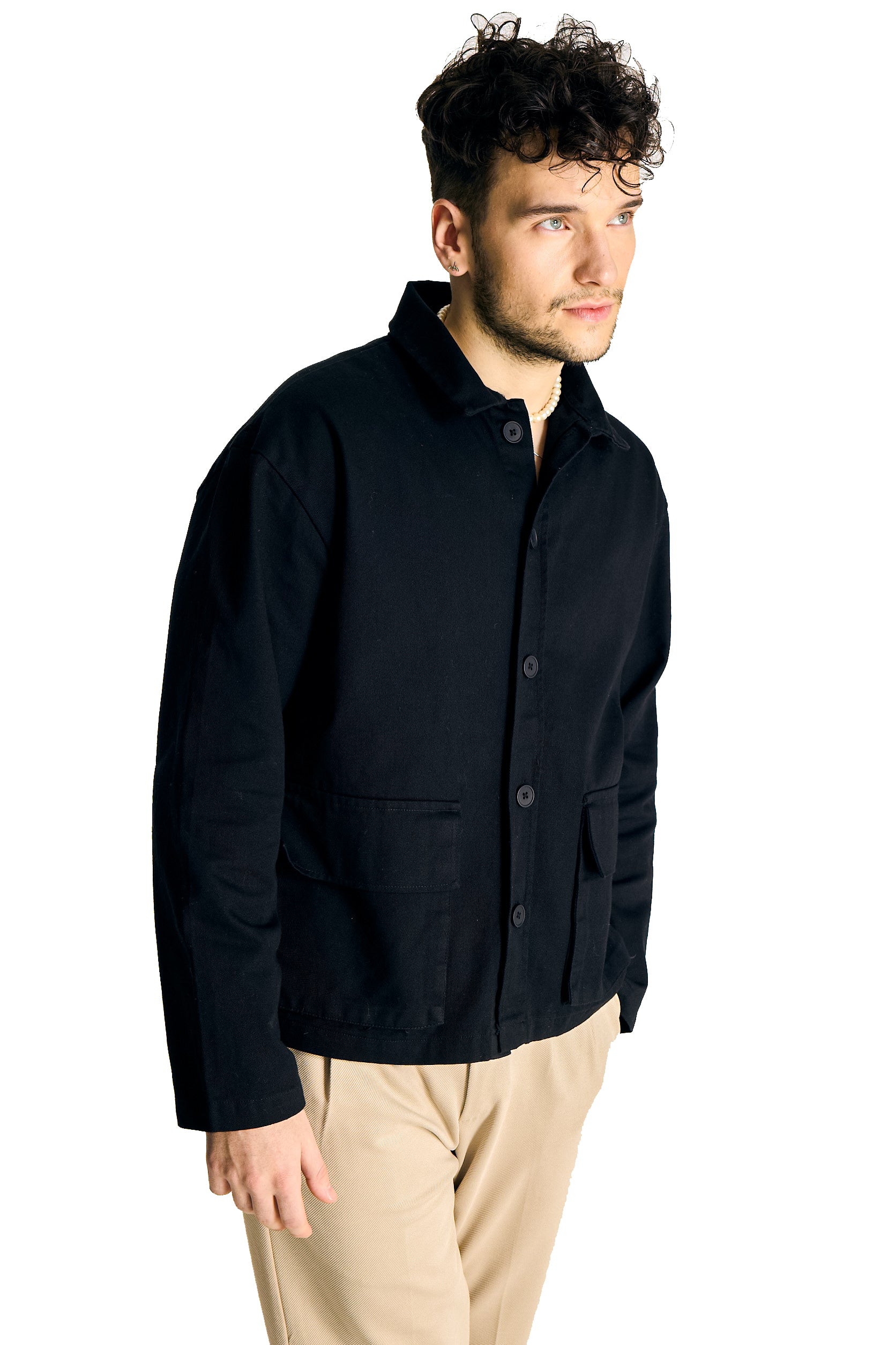 Upgrade your wardrobe with our Classic Black Cotton Jacket, meticulously crafted from 100% high-quality cotton. This timeless piece combines elegance with practicality, making it a versatile addition to your collection. Designed with a structured fit, this jacket features a button-front closure, ensuring a sleek and sophisticated look.