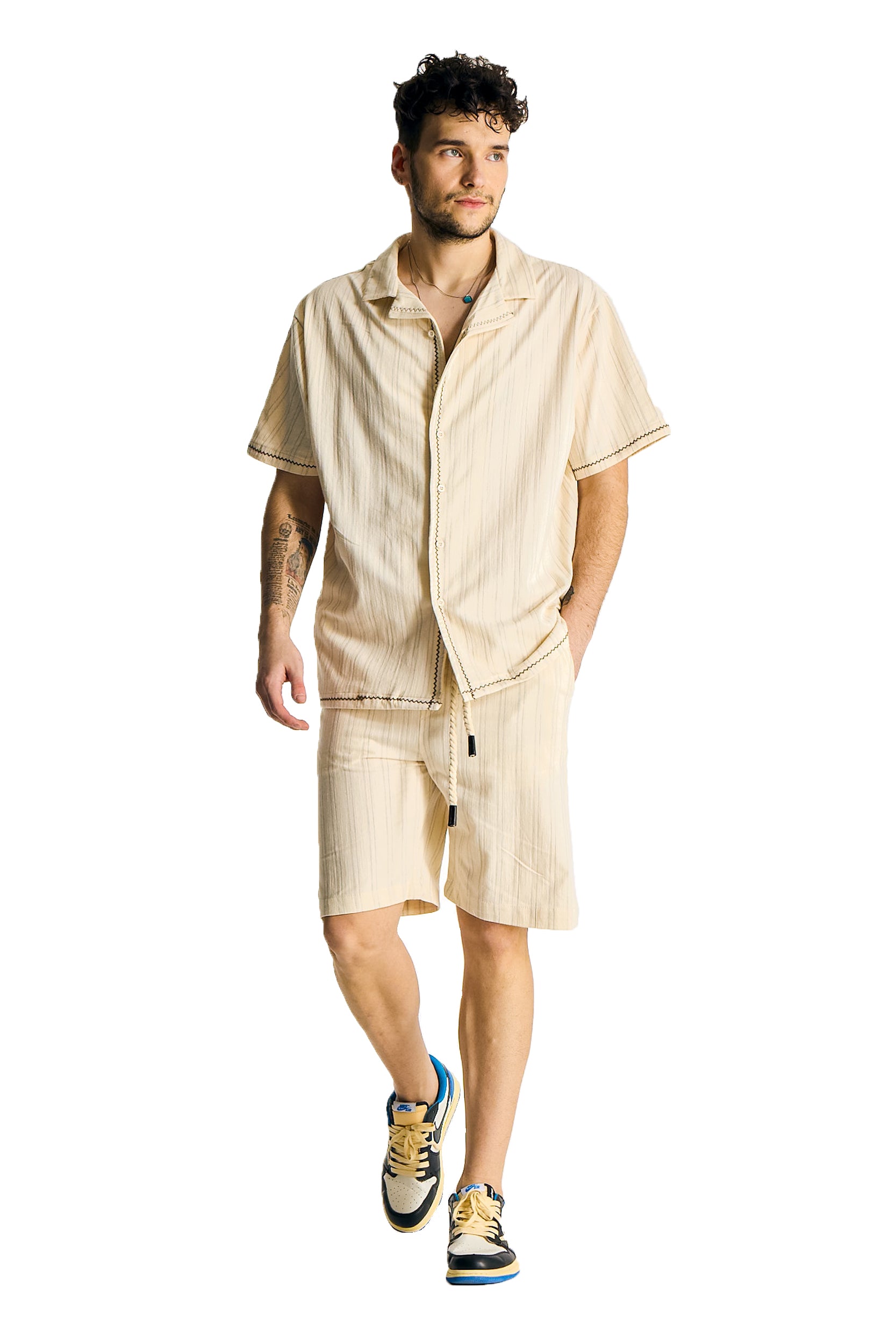 Embrace the laid-back elegance of the Desert Breeze Set, perfect for warm weather and relaxed days. Crafted from a high-quality blend of cotton, polyester, and viscose, this set offers both comfort and style. The lightweight fabric ensures breathability, while the casual design keeps you looking effortlessly cool.